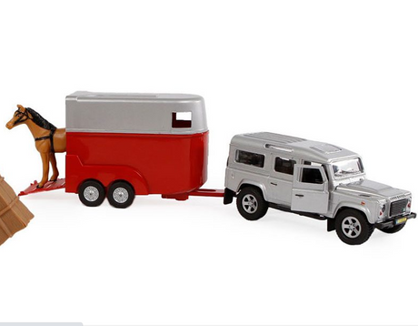 Kids Globe Landrover & Horse Trailer W/Accessories