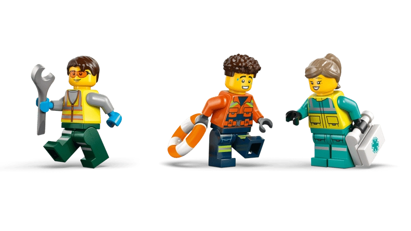 - Comes with medic, coast guard and mountain rescuer minifigures
