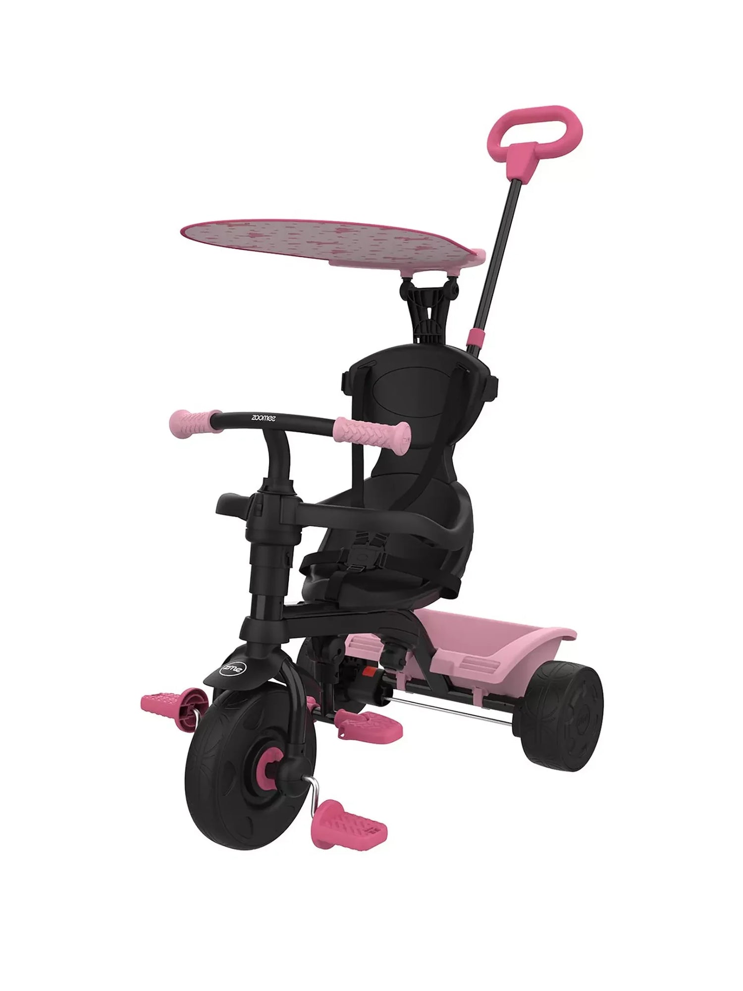 The Zoomee 4 in 1 Unicorn Dream Trike is designed to grow with your child from 10-36 months, making it a versatile choice for early riding fun. Its sleek black frame with soft pink accents is paired with a magical canopy decorated with unicorns, rainbows and stars, bringing both charm and practicality. Built with safety features and comfort in mind, it’s perfect for everyday adventures indoors or outdoors.