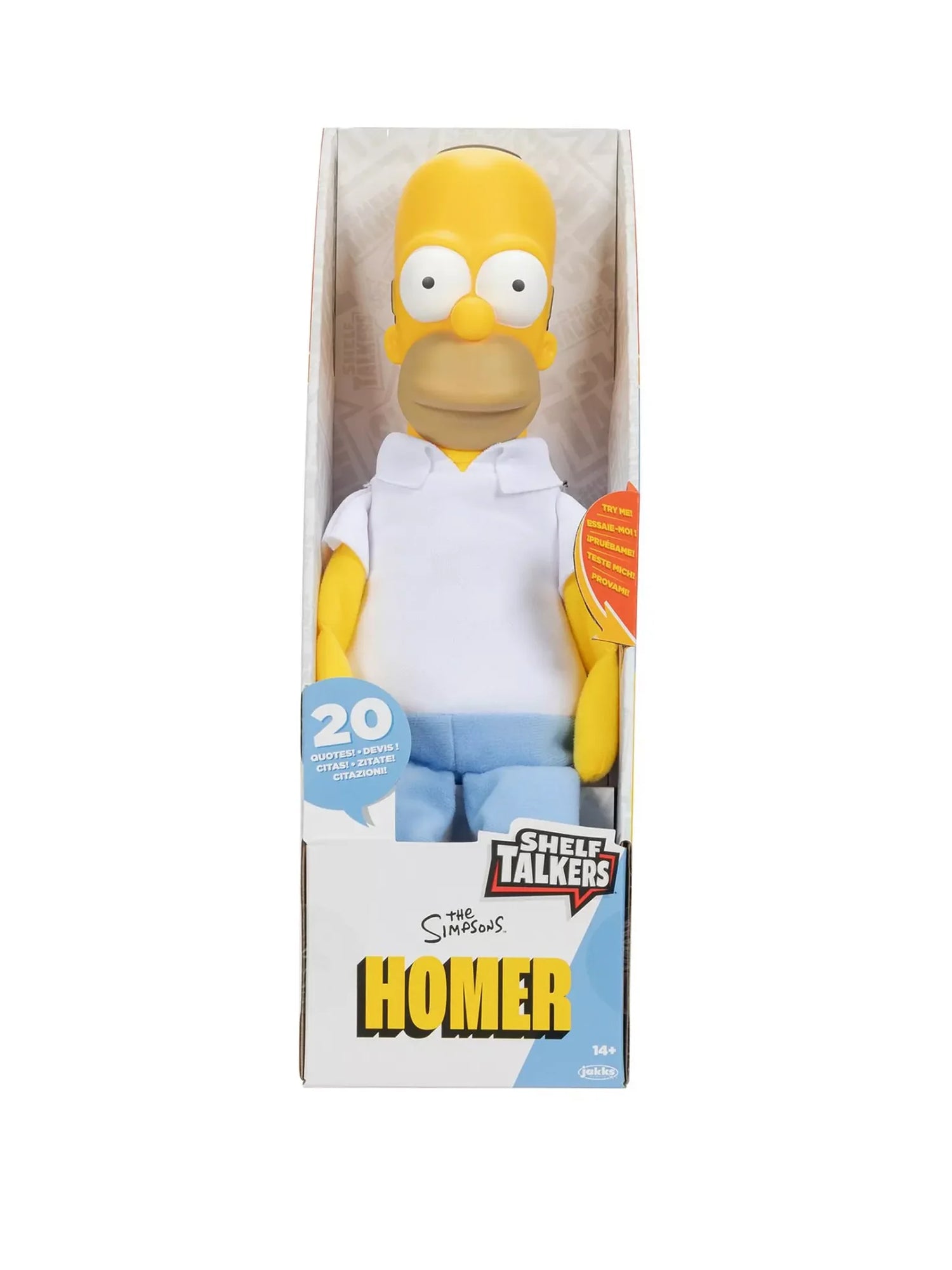 Bring classic quotes from Springfield into your collection with The Simpsons Shelf Talkers – Homer. This officially licensed 30.5 cm (12-inch) plush figure features a sculpted plastic head and a soft fabric body. Pull the string on Homer’s back to hear 20 of his most iconic catchphrases from the animated series. Designed for fans and collectors aged 14+, this talking collectible stands upright and captures Homer’s signature look with vibrant character detail. It’s the perfect display piece or fun gift for longtime Simpsons enthusiasts.