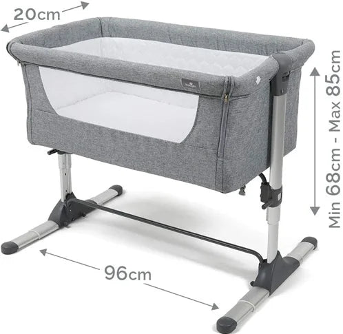 The Babylo Snuggle Cuddle Co Sleeper in grey is a secure and versatile bedside crib, ideal for keeping baby close throughout the night. Use it as a stand-alone crib or connect it beside your bed for easier night time care. Its mesh panels, tilt functionality, and adjustable height offer safe, breathable comfort for your newborn.