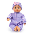 The Bayer First Words Baby Doll is a 33cm soft-bodied baby designed for little ones as young as 10 months. Press her tummy to hear 24 baby sounds, including giggles, coos, and babbling. She comes dressed in a purple romper with pastel striped sleeves and a matching cap topped with a pink bow. Lightweight and compact, she’s easy to carry and perfect for quiet, comforting play.