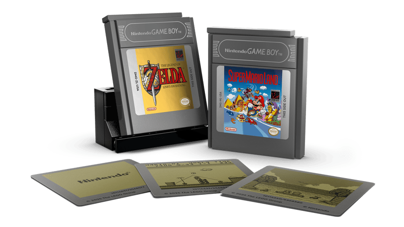LEGO Game Boy 72046 is a LEGO Super Mario display set for adults and Nintendo fans, recreating the original handheld console at near 1:1 scale. With authentic console detailing, interchangeable The Legend of Zelda: Link's Awakening and Super Mario Land Game Paks, and multiple screen options, it offers a nostalgic build designed for display.