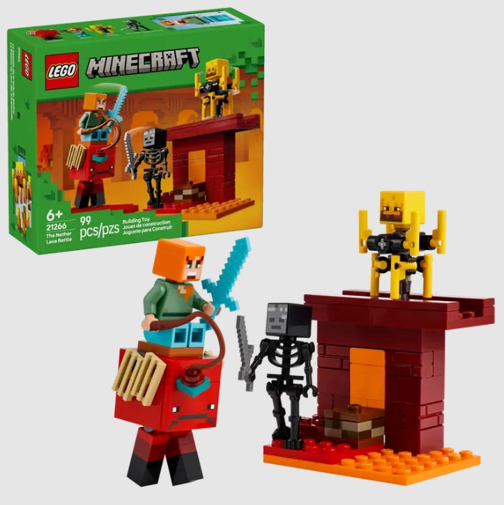 - LEGO® Minecraft® Nether fortress action – Players will need their skills to collect ancient debris, escape a lava fall, battle mobs and ride a Minecraft figure to safety